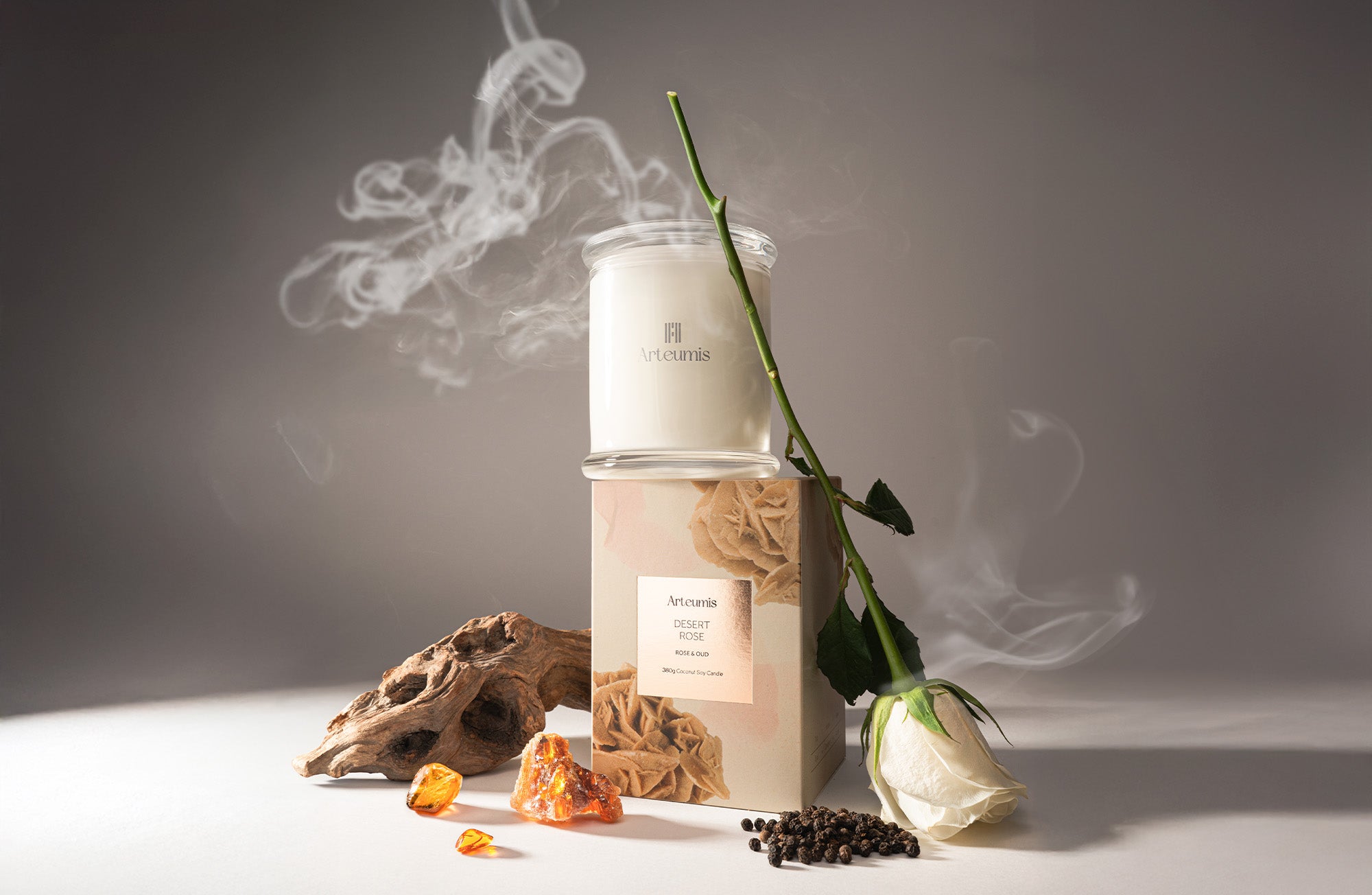 Soft rose. Deep oud. A scent that owns the room.